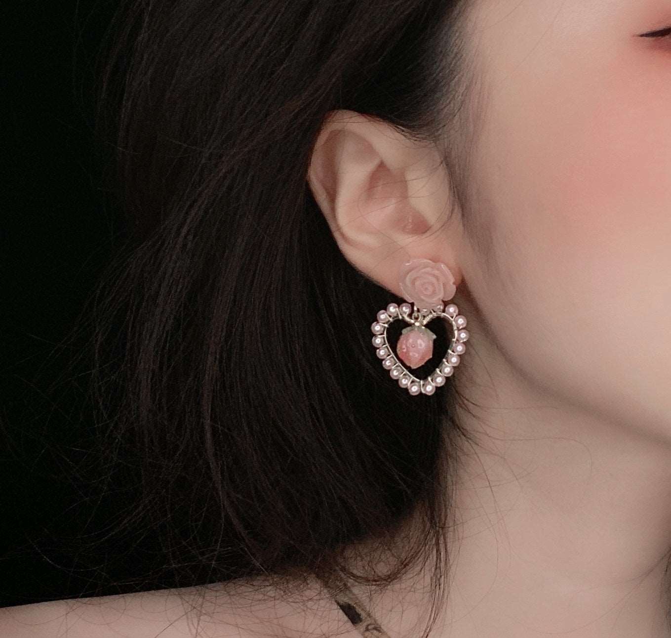Beautiful Rose Strawberry Pearl Earrings