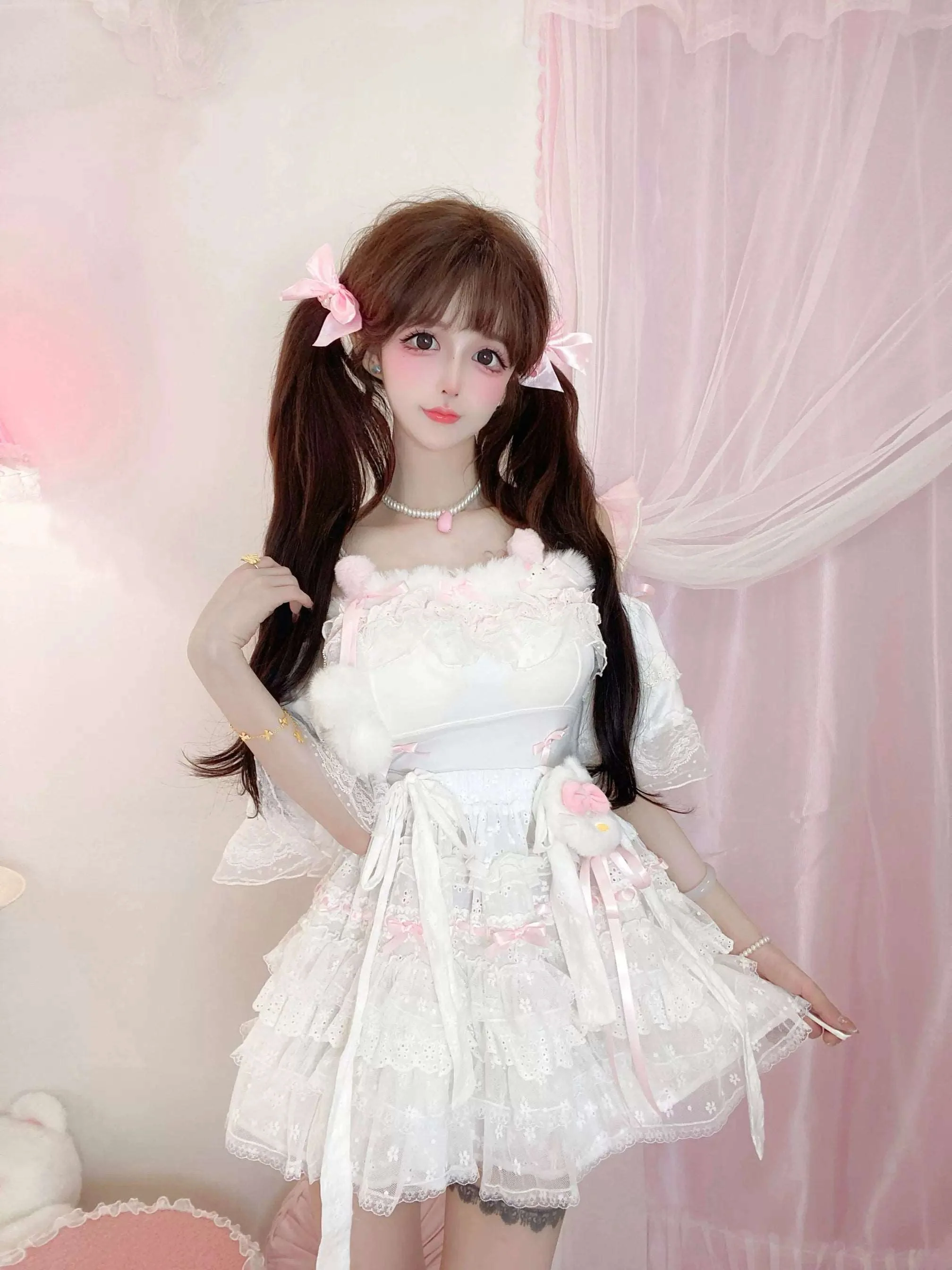 Candy Fairy Soft Angel Camisole Top White Suspender Skirt Two Piece Set
