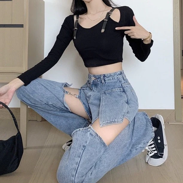 Grunge Detachable Blue Black Denim Jeans