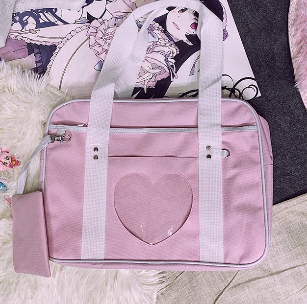 Heart Shoulder Student Pink Blue Purple Stripe Messenger Bag