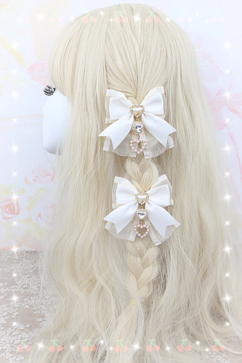 Jirai Kei Pearl Soft Twins Bows Heart Hair Clips Hair Accessories