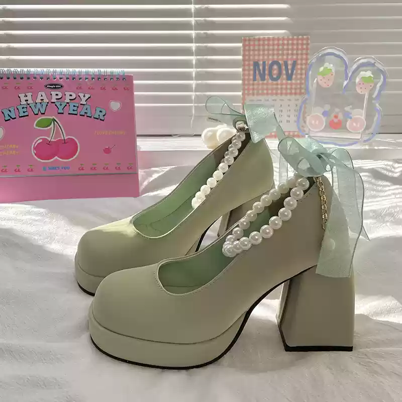 Mary Jane Bow Pearl Retro Classic Black White High Heels Shoes