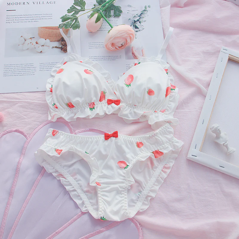 Red Strawberry Pattern Bow Lace White Pink Panties Underwear